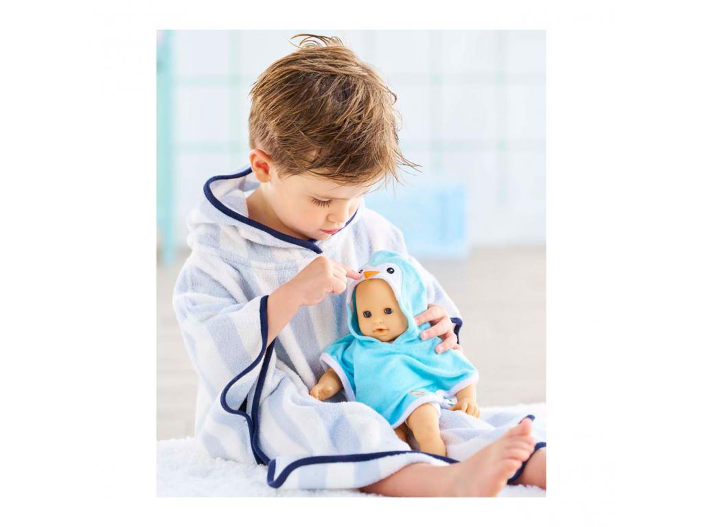 Ez az aranyos, pingvinfej alakú kapucnis fürdőkendő megszárítja és melegen tartja a 30 cm-es Corolle Bath Dolls és Corolle Bébé Calin babákat fürdés után.