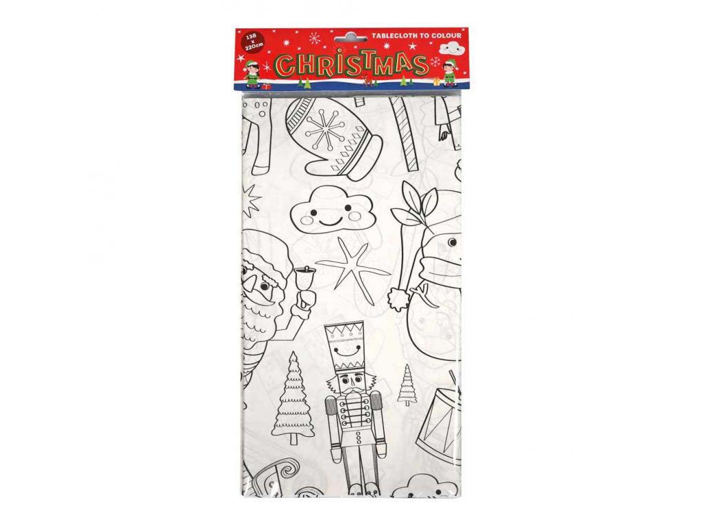 Karácsonyi asztalterítő festőkönyv-nyomtatvánnyal, ideális kifestésre. Tökéletes kreatív pillanatokhoz az ünnepek alatt.