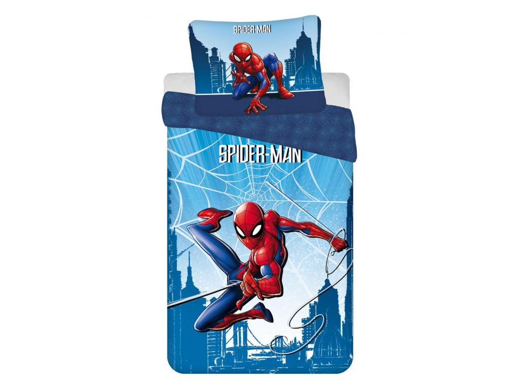 Kétoldalas nyomtatott ágyneműhuzat (1 fő részére) Spider-Man-nel. Pamutból. Méretek: 200 x 140 cm; párnahuzat 90 x 70 cm. Az ágyneműhuzat cipzárral záródik.