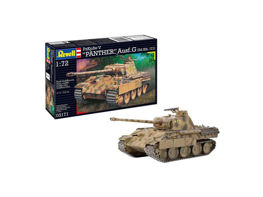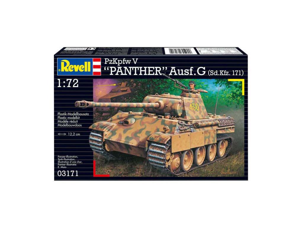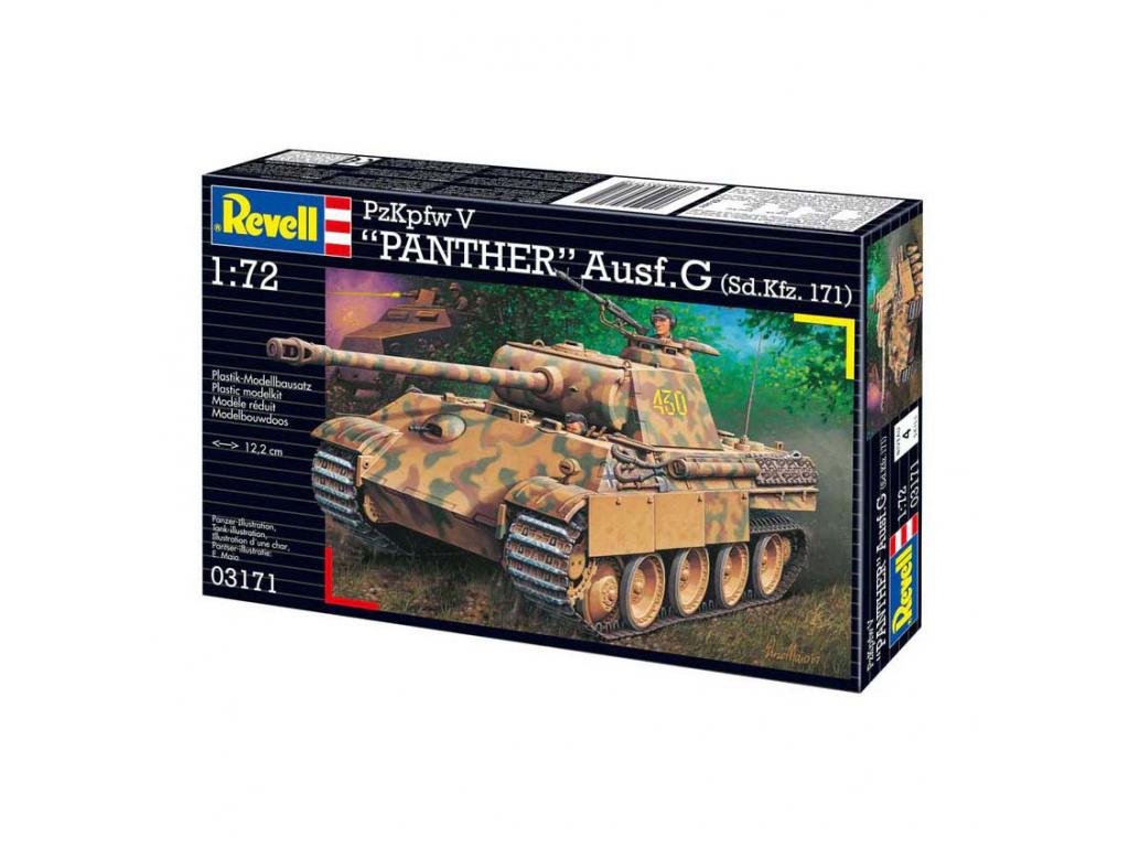 A G-verzió volt a Pzkpfw V Panther leggyakrabban gyártott változata, és 1944-től felváltotta az A-verziót. Méretarány 1:72. 124 alkatrész. Hossza 12,2 cm. 12 éves kortól alkalmas.