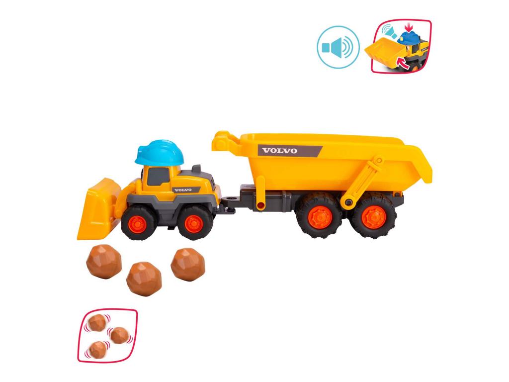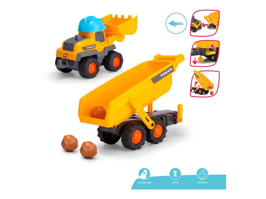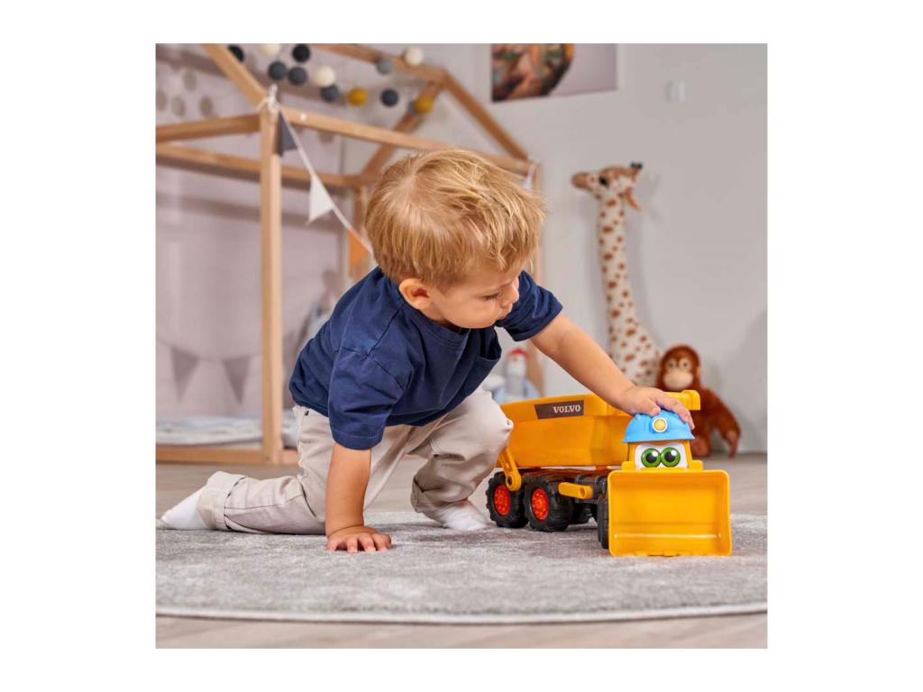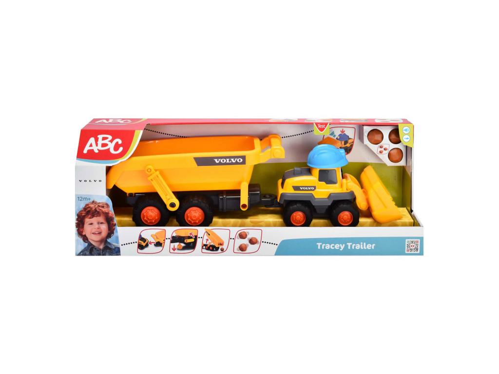 Színes játék teherautó ABC-hangokkal, 12 hónaposnál idősebb gyermekek számára alkalmas. Biztonságos kialakítás lekerekített formákkal és robusztus szerkezettel.