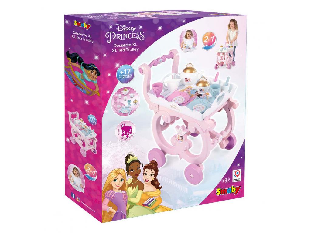 A Smoby Disney Hercegnők teáskészlet kerekes kocsival, 17 darabos. leírása:
