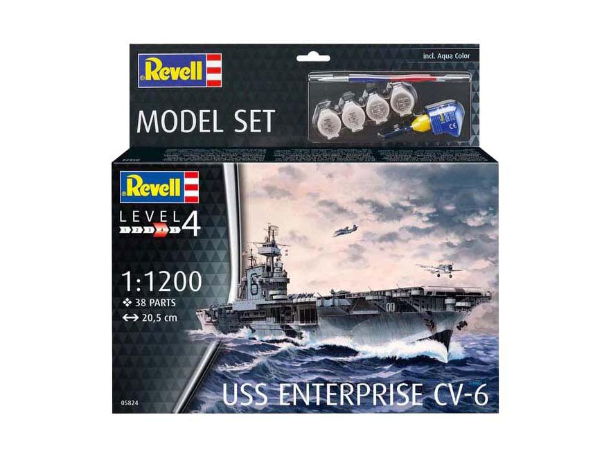 A Revell modellező készlet USS Enterprise CV-6 1:1200 38 darabos. leírása: