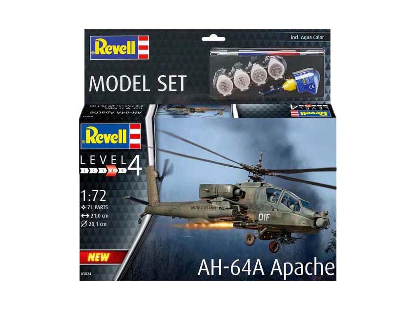 Revell modellező készlet AH-64A Apache helikopter 1:72 71 darabos.