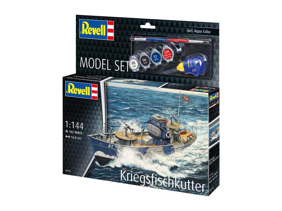 Revell modellező készlet KFK (Kriegsfischkutter, háborús halászhajó) 1:144 102 alkatrész.