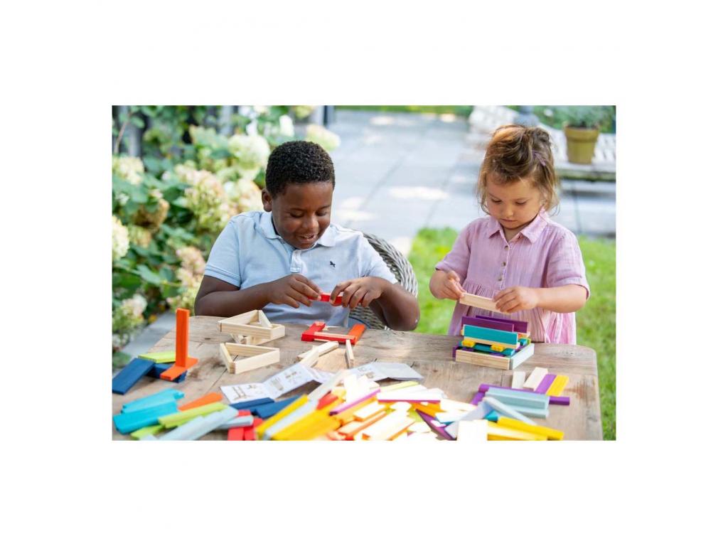 Ez a fa építőelem-készlet 200 különböző színű lapot tartalmaz. Az útmutató segítségével építsd meg a legkülönlegesebb szerkezeteket!