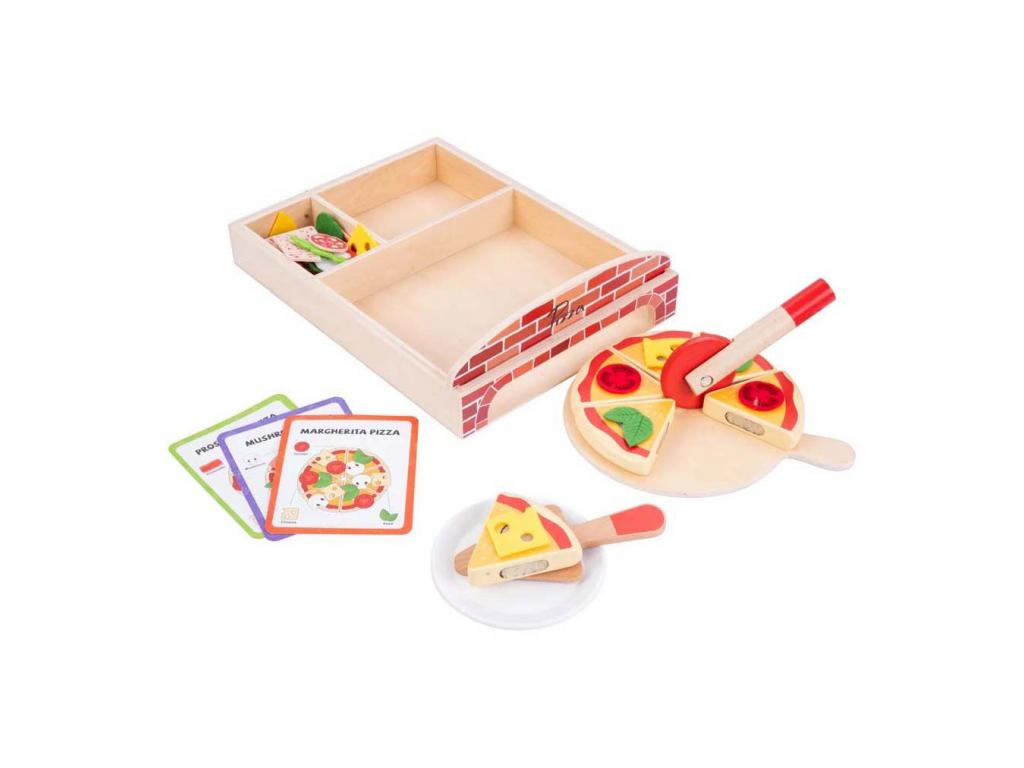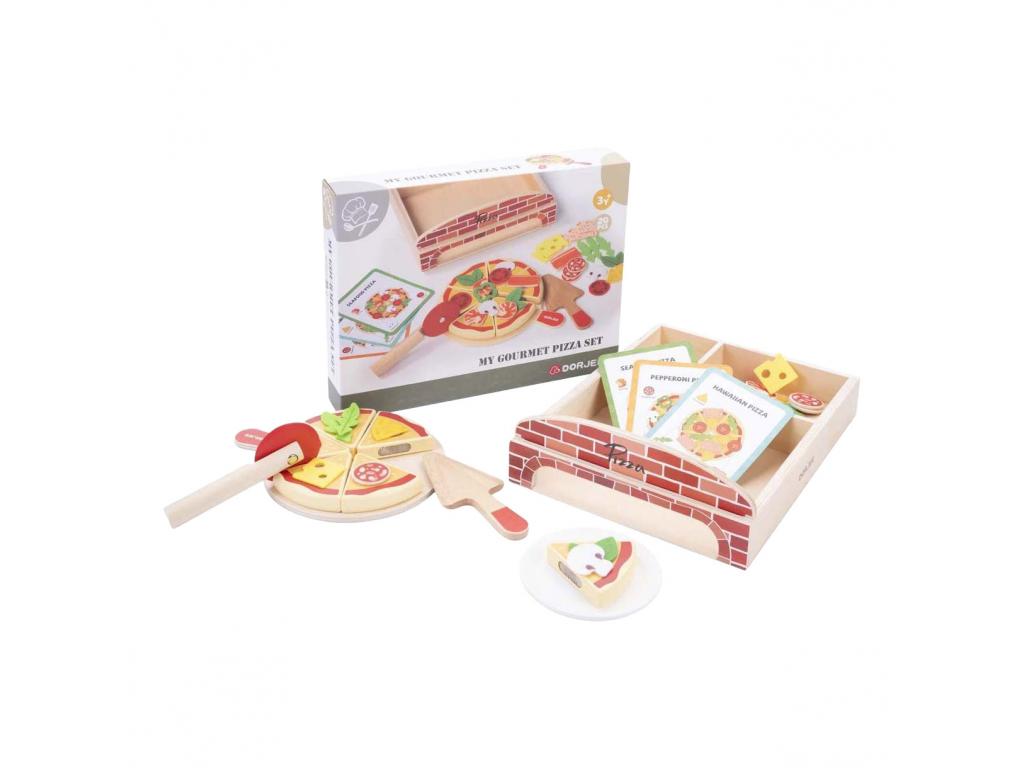 A Dorjee fa pizzasütő játékkészlete ízletes kalandot kínál a gyerekeknek. A kiváló minőségű fából készült készlet tartalmaz egy pizzasütőt, hozzávalókat, egy pizzavágót, egy pizzalapátot és példakártyákat. A pizza hat darabra vágható.