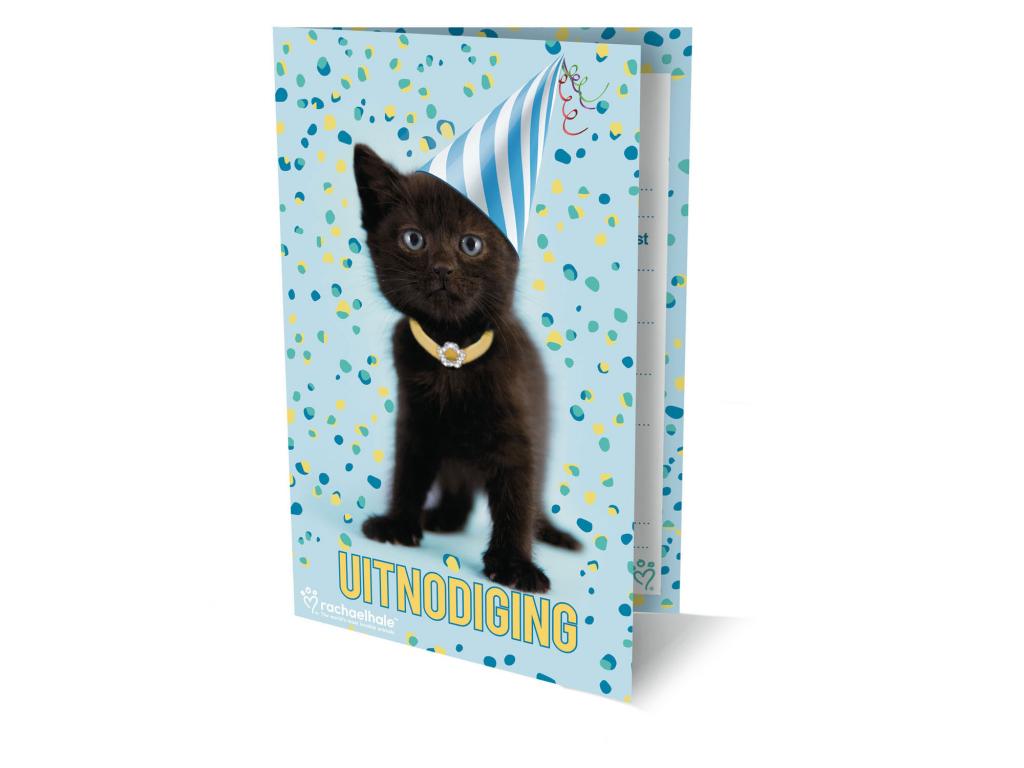 6 darab macskás motívumú meghívó. Méretek: 17,5 x 12,2 cm