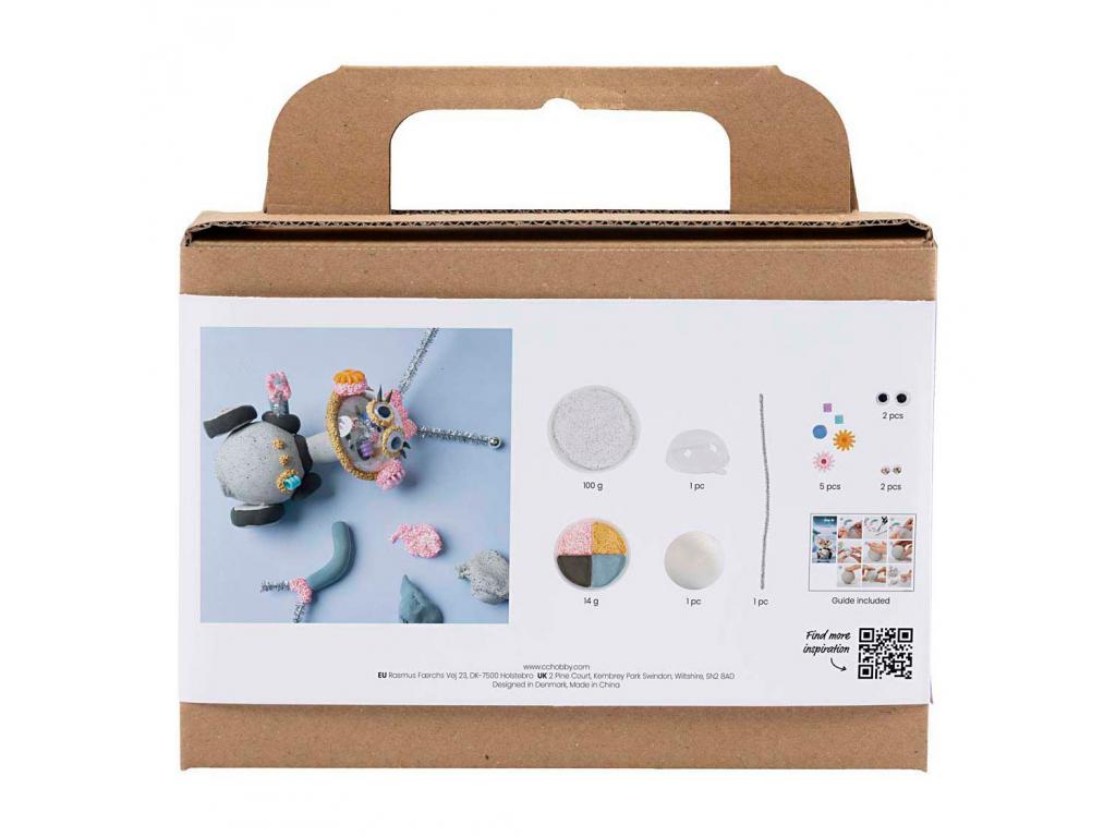 Ez a kézműves készlet Stone Clay, Foam Clay, Silk Clay, gyöngyöket, egy hungarocell gömböt, egy műanyag félgömböt és pipaszívókat tartalmaz. Készítsen egy kőhatású robotot, és díszítse kedve szerint. Az útmutató órákon át tartó kézműves szórakozást biztosít.