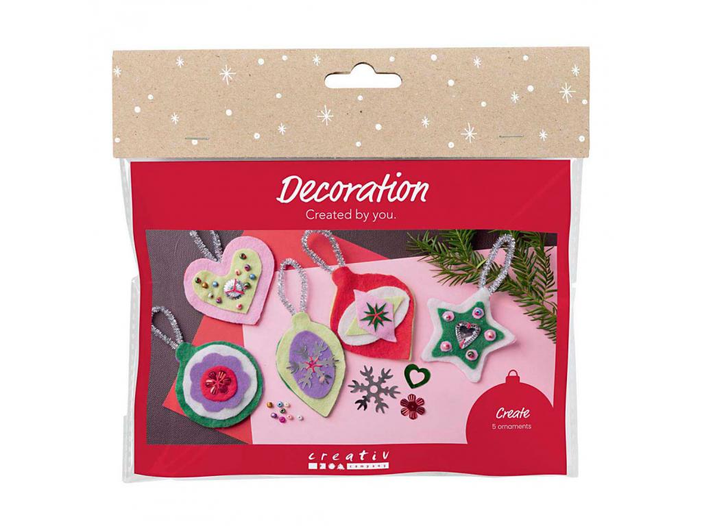 Lehet-e a karácsonyi dekoráció készítése egyszerű és szórakoztató? Igen és ez a készlet bizonyítja. Szülőként gyermekeivel együtt nyugodtan készíthet fantasztikus dekorációkat. Vágja ki a filcformákat a sablonok segítségével, díszítse őket színes flitterekkel és gyöngyökkel, majd ragassza össze a darabokat. Az utolsó simítást pipaszárak adják, amelyek felakaszthatók vagy vidám díszként szolgálhatnak.