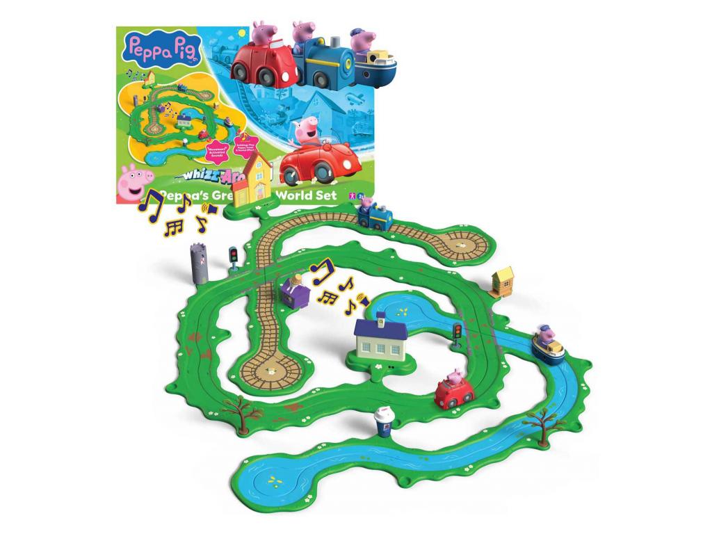 Ez a készlet tökéletesen kombinálható más Peppa Malac Whizz Around játékkészletekkel és az 5 járművel (külön kapható). Így egyre nagyobb világ jön létre, tele kalandokkal, barátsággal és szórakozással. Ez az ideális játékkészlet a fiatal Peppa-rajongók számára: interaktív, vidám és tele a sorozatból ismert elemekkel. 2 éves kortól alkalmas.