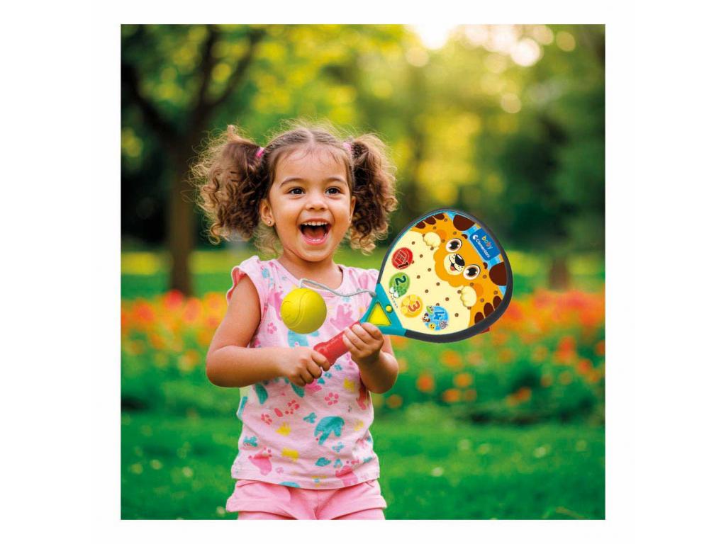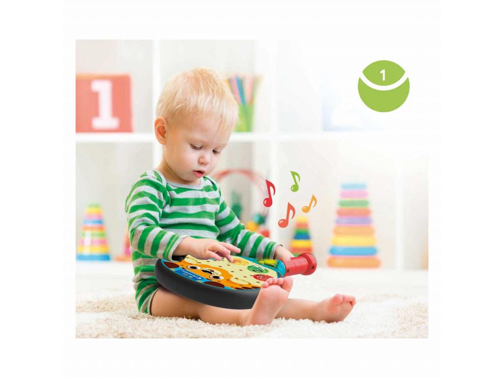 Interaktív ütő fény-, hang- és mozgásérzékelővel. Négy nyelven nevezi meg a számokat, színeket és állatokat. Műanyagból. Méretek: 30 x 23 x 7 cm. 1-4 éves gyermekek számára alkalmas.