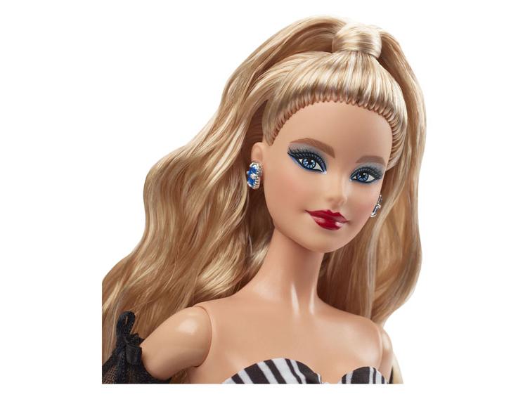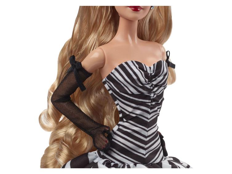 Ez a csillogó Barbie baba Barbie 65. születésnapját ünnepli egy gyönyörű divatnyilatkozattal. Az ikonikus örökség tiszteletére felejthetetlen megjelenését tetőtől talpig gyönyörű részletek díszítik, amelyek tisztelegnek az eredeti Barbie baba előtt. Fekete-fehér ruhája zafírkék színű foltokkal a gyűjtők, Barbie-rajongók és divatértők számára világszerte kötelező darab. Babatartóval és eredetiséget igazoló tanúsítvánnyal együtt. A Barbie baba nem tud egyedül állni. A színek és a díszítések eltérhetnek.