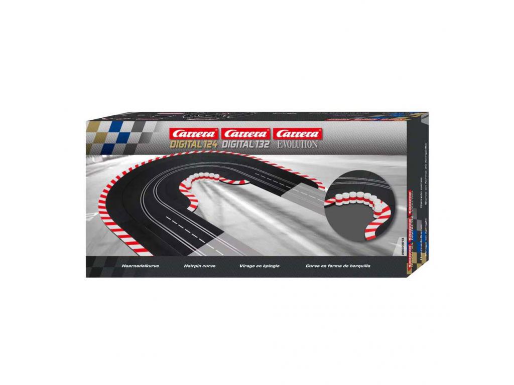 Hajtűkanyar-készlet Carrera versenypályákhoz 1:24 méretarányban, kanyarokkal, egyenesekkel és szegélyekkel. Kompatibilis a DIGITAL 124, DIGITAL 132 és EVOLUTION modellekkel. Műanyagból, 8 éves kortól ajánlott.