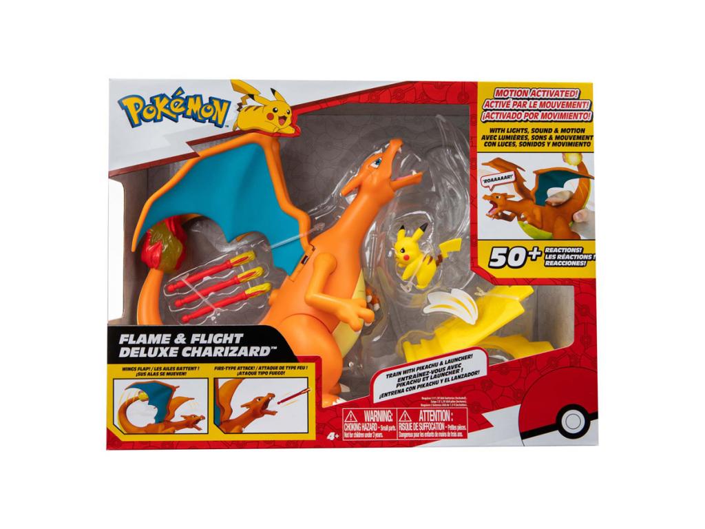 A Pokémon Láng & Repülés Deluxe Charizard több mint 50 hanggal és mozdulattal rendelkezik, beleértve a tűzokádást és a repülési akciót. Pikachu figurát tartalmaz. 4 éves kortól alkalmas.