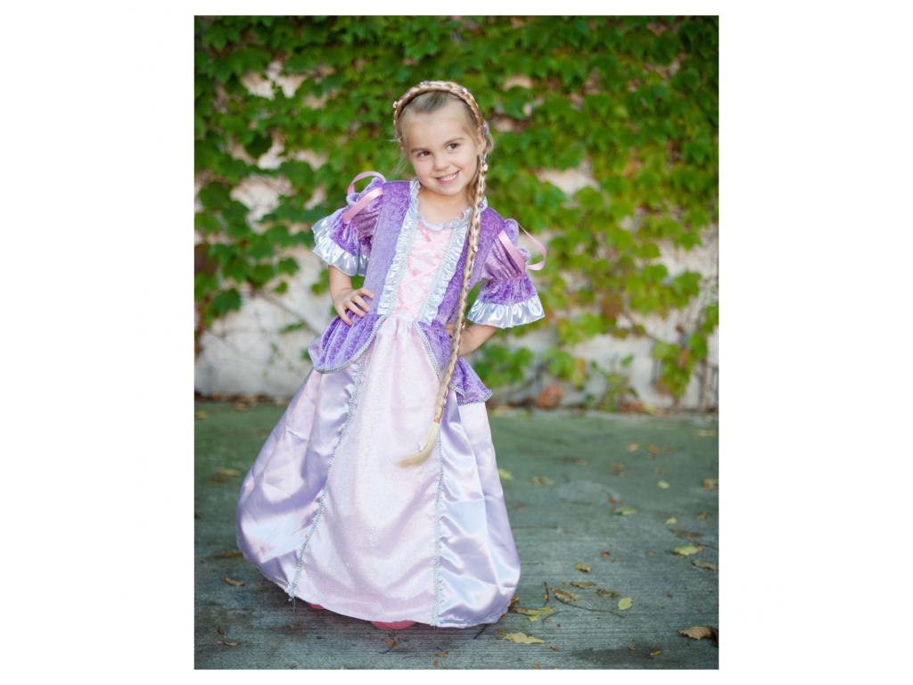 Ezzel a fejpánttal igazi szőke Rapunzelnek öltözhetsz, mert hosszú copffal díszített. A copf a fejpánthoz van rögzítve, és egy díszes virágokkal díszített szalag fut végig rajta.