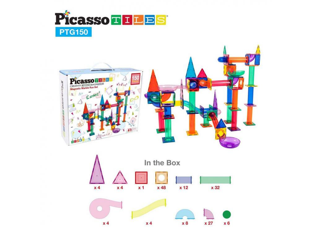 A PicassoTiles golyópálya mágneses építőelemek, 150 darab leírása: