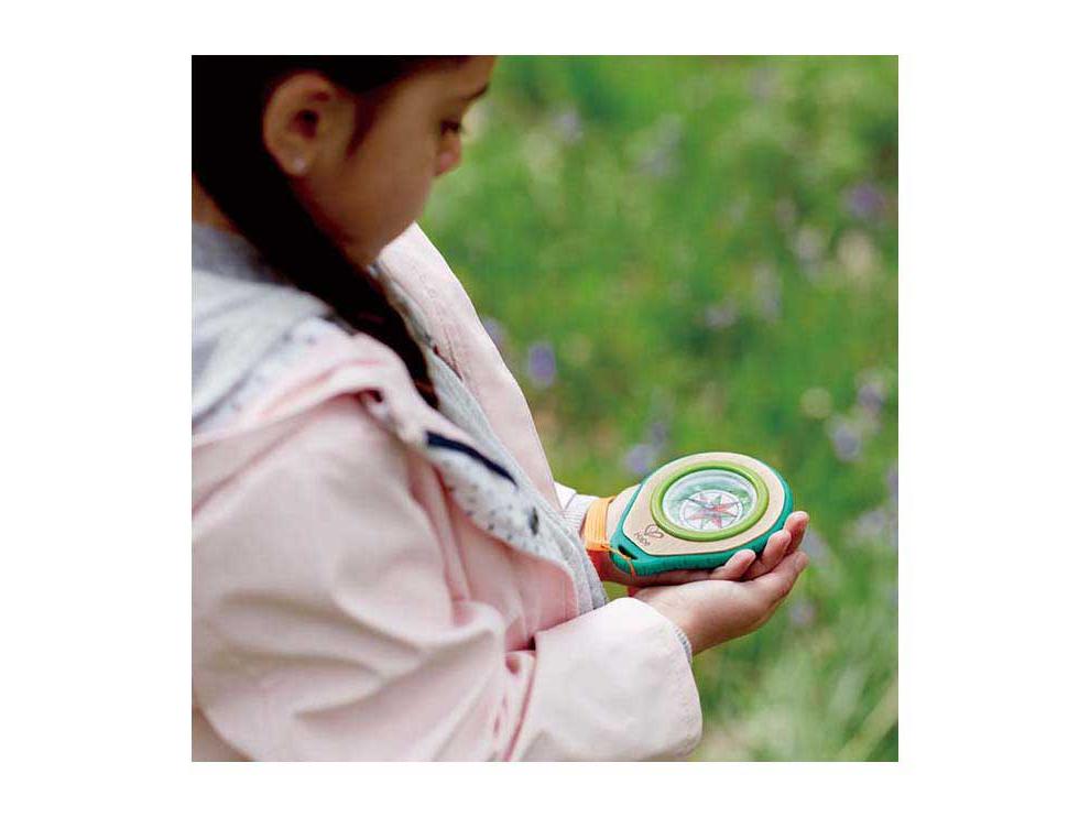 Kempingezés vagy erdei séta: ezzel a bambuszból és újrahasznosított műanyagból készült iránytűvel és karabinerrel a gyerekek a legjobb felszereléssel indulhatnak a természetbe. A karabiner teherbírása 10 kilogramm.