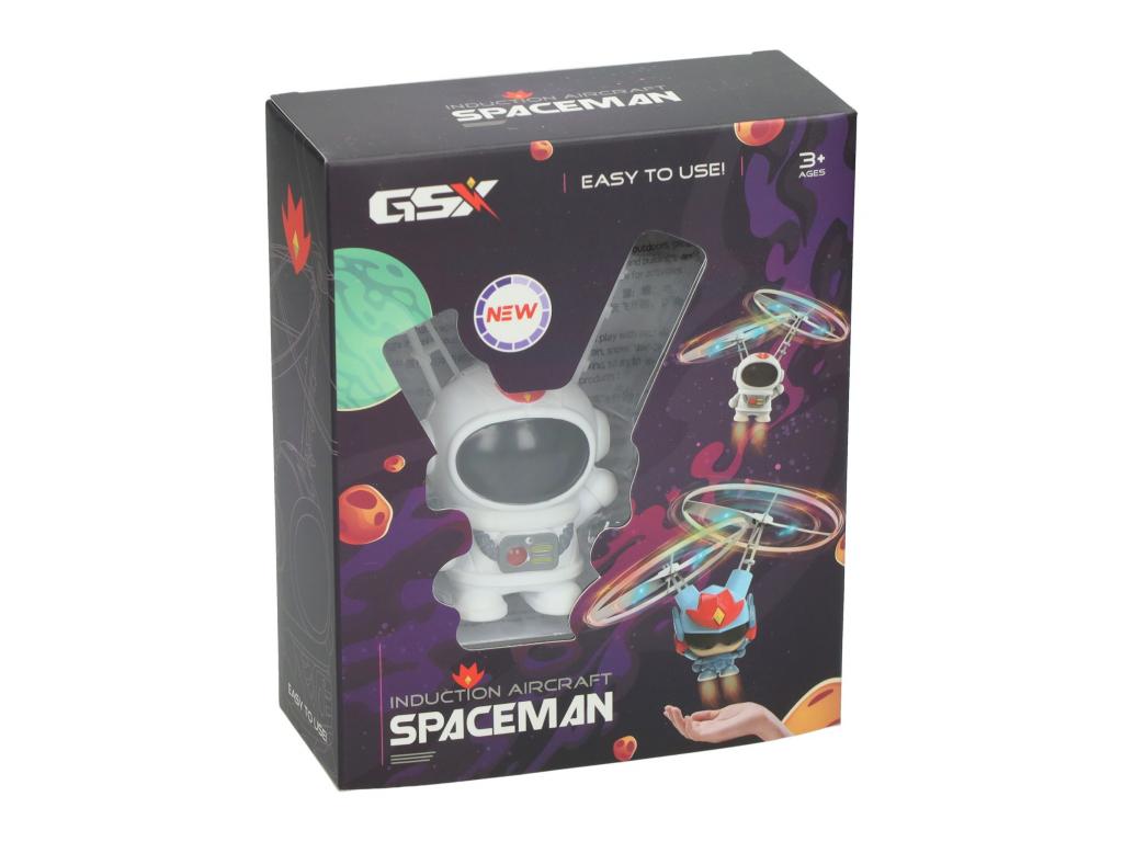 Repülő űrhajós érzékelővel, világító propellerekkel és USB-töltőkábelrel. Műanyagból. Méretek: kb. 18 x 10 x 12 cm. 3 éves kortól alkalmas.