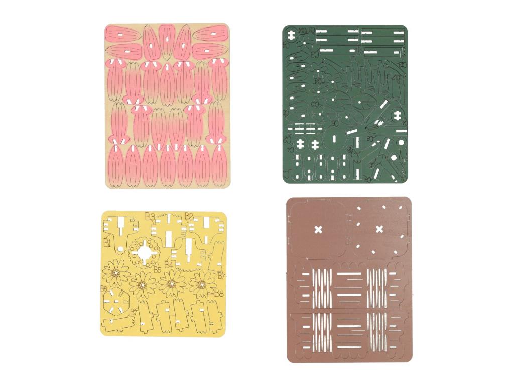 Ez a 3D-készlet 99 fa alkatrészből áll, amelyekből margaréta virág építhető. Nincs szükség ragasztóra vagy ollóra. Kartonból készült. 8 évesnél idősebb gyermekek számára alkalmas.