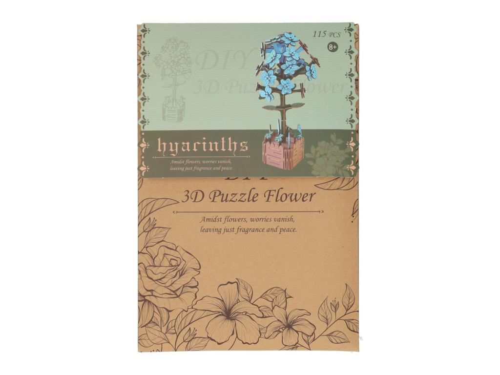 Ez a 3D-készlet 115 fa alkatrészt tartalmaz jácint készítéséhez. Nincs szükség ragasztóra és ollóra. Kartonból készült. 8 évesnél idősebb gyermekek számára alkalmas.