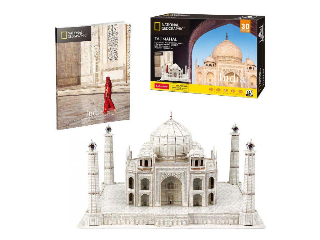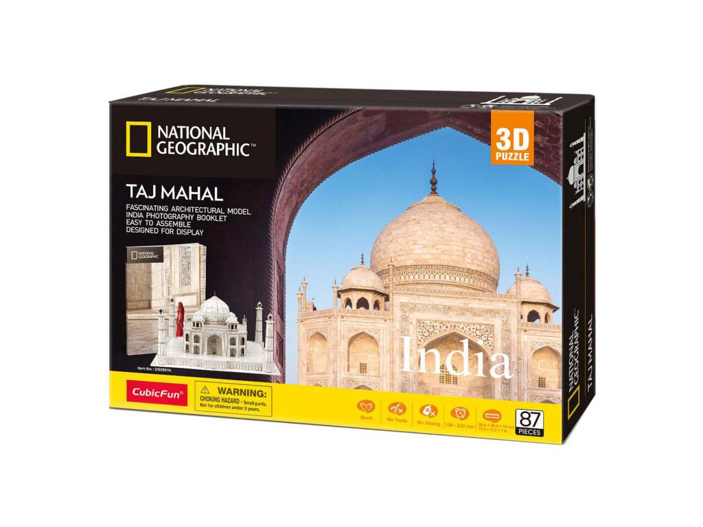 National Geographic 3D-puzzle Taj Mahal. Nincs szükség szerszámra vagy ragasztóra. 87 darabból áll. Tartalmazza az utasítást és az információs brosúrát. Szép dobozban csomagolva. 8 éves kortól alkalmas.