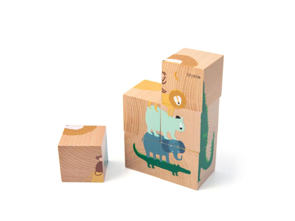 A fa játékok klasszikusa: puzzle építőelemek! Hat különböző puzzle, amit össze lehet rakni, és milyen jó móka a fa kockákat egymásra rakni. Ezek a puzzle blokkok javítják gyermeke finommotorikáját és kognitív képességeit. A puzzle 100%-ban FSCŠ-tanúsított fából készült. Minden festék vízbázisú és babák számára is biztonságos.