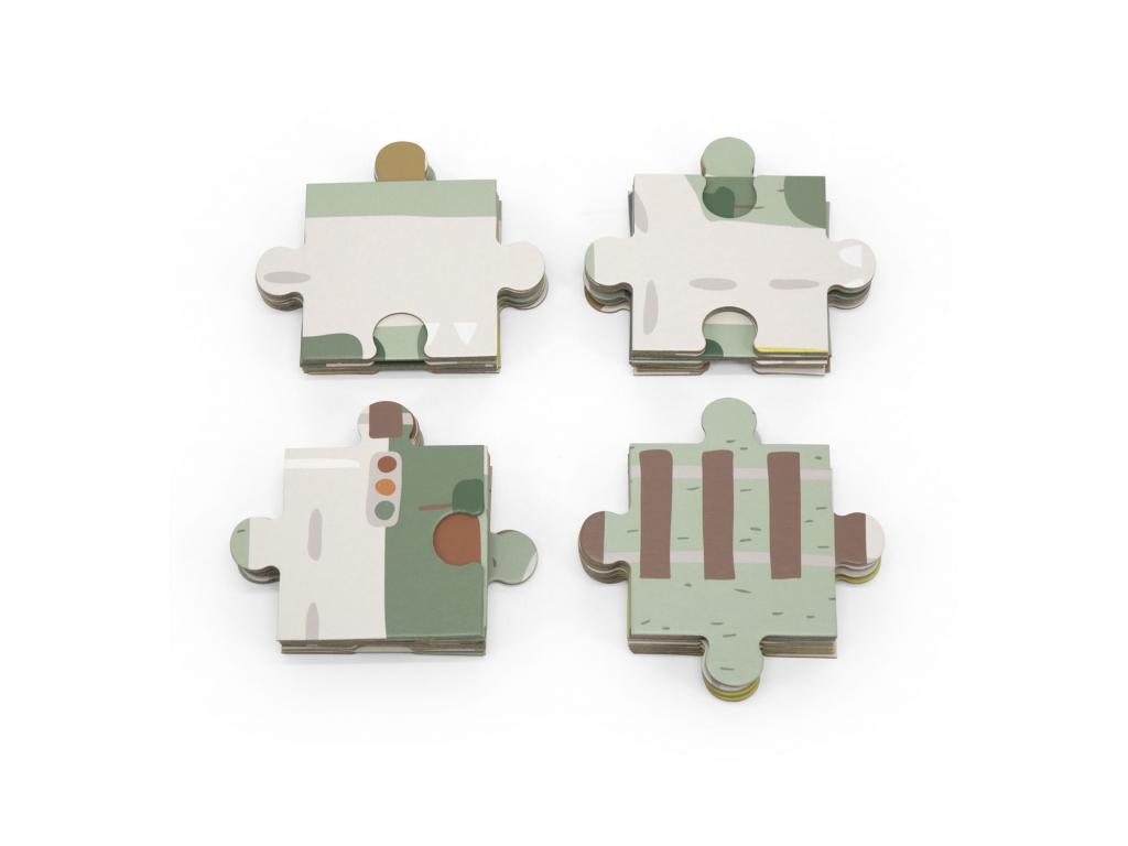 Minden, amit a gyerekek szeretnek, egy dobozban: puzzle nagy darabokkal, 2 autó állatfigurákkal és vicces építőelemekkel, amelyekkel házat lehet építeni. Ez a remek játék órákon át szórakoztatja a kicsiket.