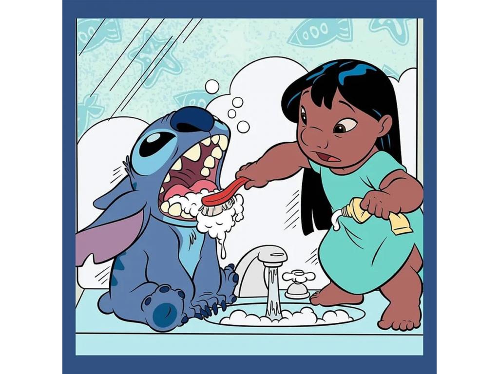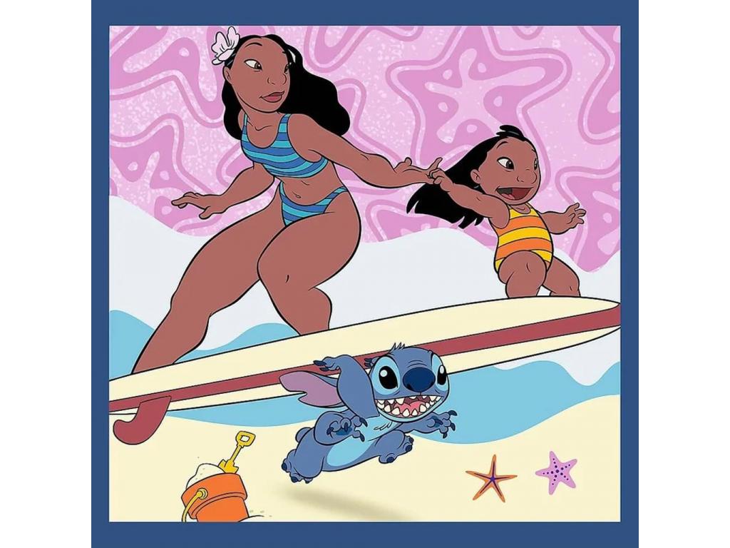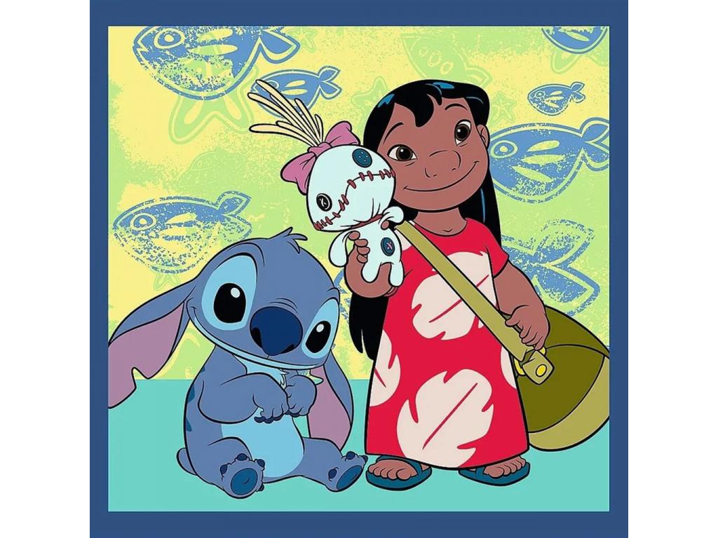 A három puzzle különböző jeleneteket mutat be a Disney népszerű animációs filmjéből. Az egyik képen Lilo éppen fogat mos Stitch-nek, egy másikon közösen élvezik a strandolást és szörfözést, míg a harmadik jelenetben Lilo szeretettel öleli Stitch-et és kedvenc plüssét. A meleg színek, a barátságos karakterek és a nyári hangulatú háttér garantáltan lekötik a gyerekek figyelmét, miközben pozitív érzelmi világot közvetítenek.