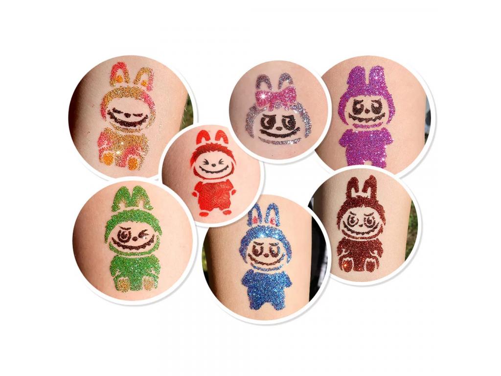 Használatuk rendkívül egyszerű: csak húzd le a sablont, ragaszd a bőrre, vidd fel a ragasztót és szórd rá a választott csillámport. Néhány pillanat múlva már kész is a saját, színes és csillogó Labubu figura! A sablonok újrahasználhatóak, ha óvatosan bánsz velük, így többször is előkerülhetnek egy-egy kreatív alkalom során.