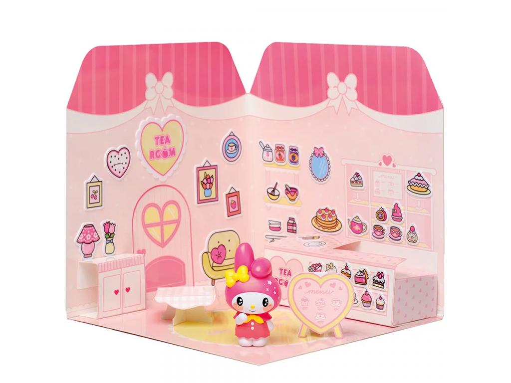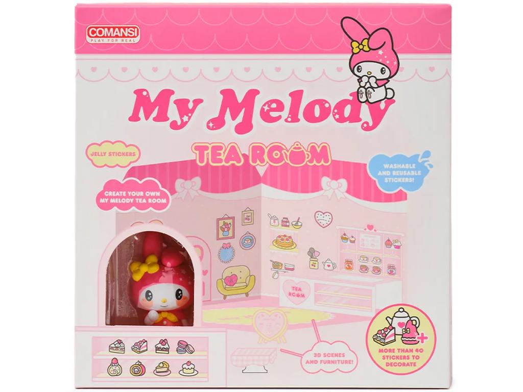 A dobozban egy bájos My Melody figura található, valamint egy színes 3D teázó enteriőr, amelyet több mint 40 újrahasználható jelly matricával lehet feldíszíteni. Sütemények, teáscsészék, édességek és kiegészítők várnak, hogy gyermeked saját elképzelése szerint dekorálja a kis helyiséget. A matricák lemoshatók és újra ragaszthatók, így a játék mindig megújulhat, a jelenetek újra és újra eljátszhatók.