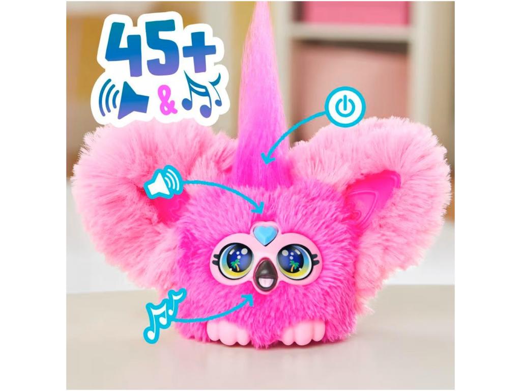 Flo-Flo szuperpuha bundájával és hatalmas, csillogó szemeivel azonnal elvarázsolja a gyerekeket. A hozzá tartozó cuki, Furby-formájú karabinerrel a hátizsákra, tolltartóra vagy akár ruhára is rögzíthető így bármikor, bárhová magatokkal vihetitek! Egy gombnyomással életre kel: reagál hangra, simogatásra, sőt még más Furblets barátokra is, ha a közelükben van.