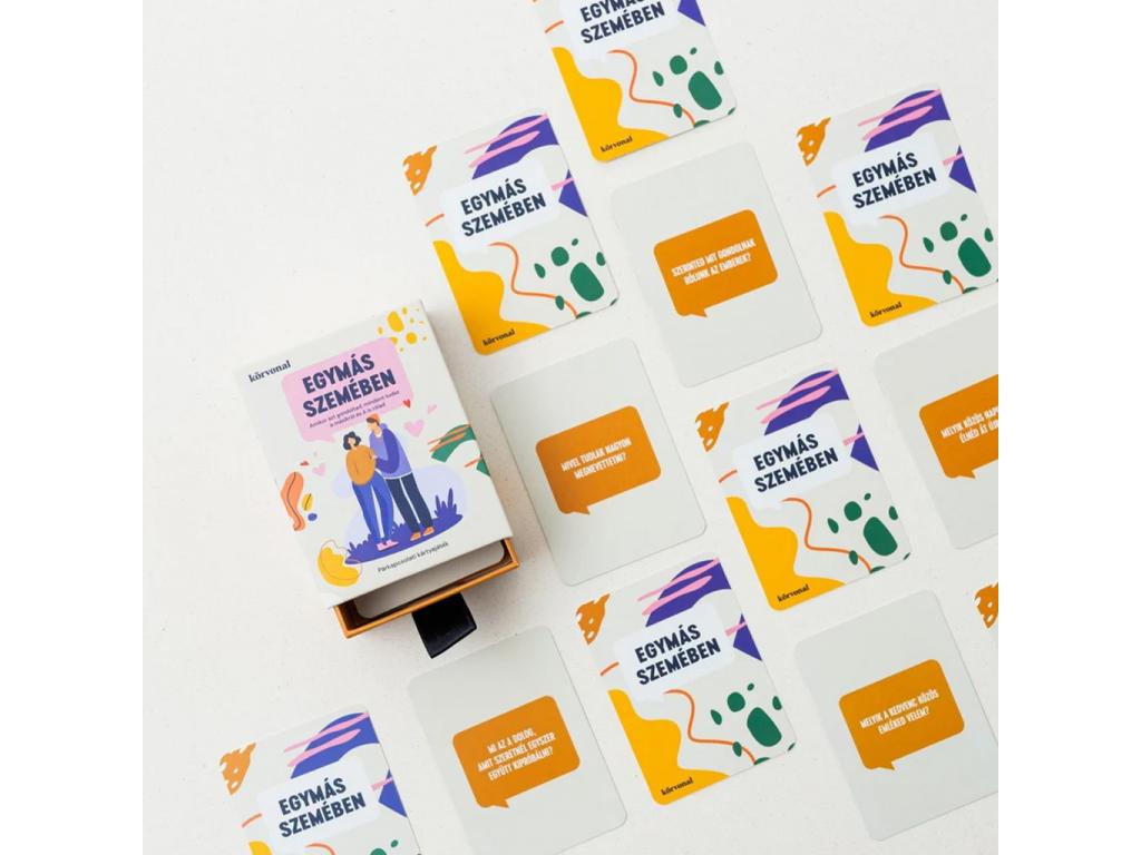 A Körvonal Egymás szemében egy párkapcsolati kártyajáték, amely segít újra felfedezni a másikat még akkor is, ha úgy érzed, már mindent tudtok egymásról. Ez a játék abban támogat, hogy elmélyítsétek a kapcsolatotokat, megnyíljatok egymás felé és olyan kérdésekre válaszoljatok, amik a mindennapok rohanásában ritkán kerülnek elő. Ideális választás pároknak, akik szeretnének közelebb kerülni egymáshoz, többet megtudni egymás érzéseiről, gondolatairól, emlékeiről.
