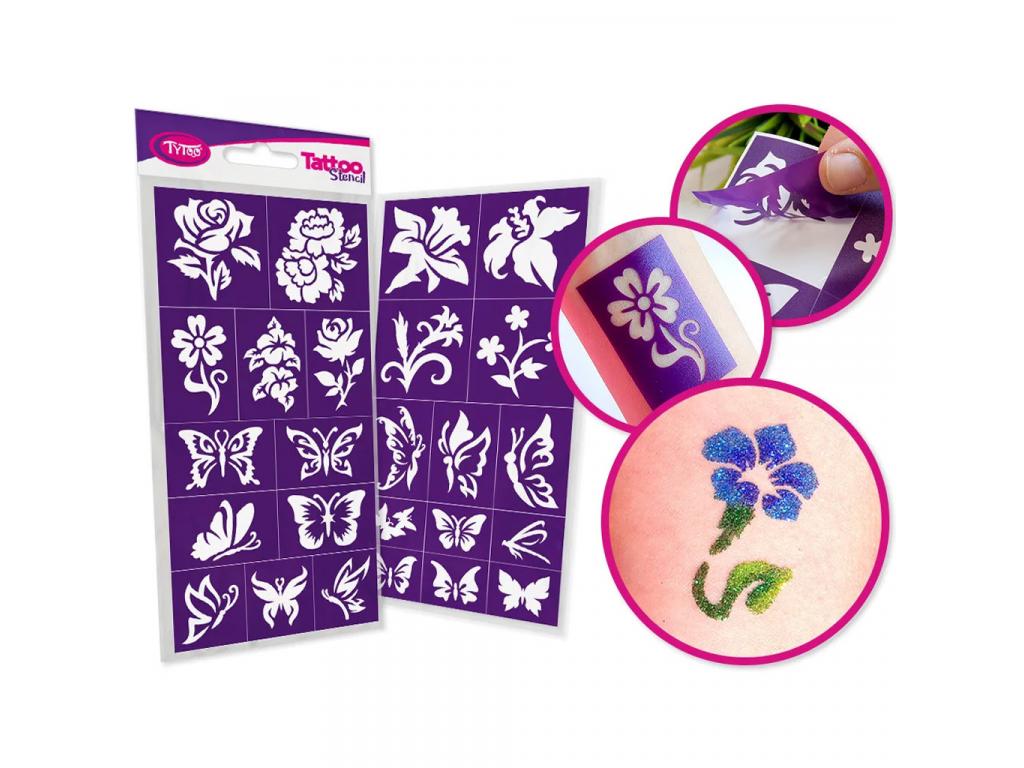TyToo: Virágok csillámtetoválás sablon szett 24db