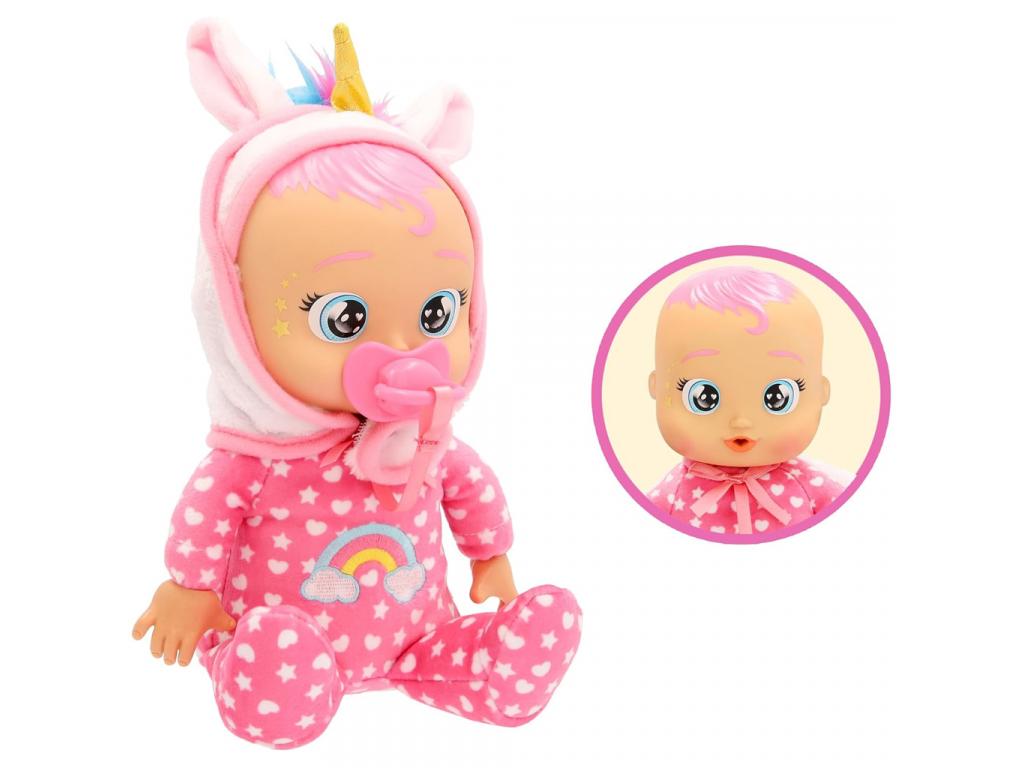 A fejére húzható kapucni aranyszínű szarvval, színes sörénnyel és egyszarvú fülekkel teszi igazán különlegessé, ráadásul a kapucni le is vehető, így még több játéklehetőséget kínál. A baba cumija világos rózsaszín, és kivehető, amint pedig eltávolítod, Dreamy sírni kezd. Igen, valódi könnyeket hullat ehhez csak egy kis vízre van szükség. Ez az interaktív funkció nemcsak szórakoztató, de segít abban is, hogy gyermeked megtanulja, hogyan nyugtassa meg és gondoskodjon egy kis barátról.