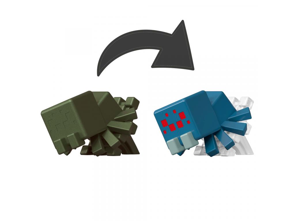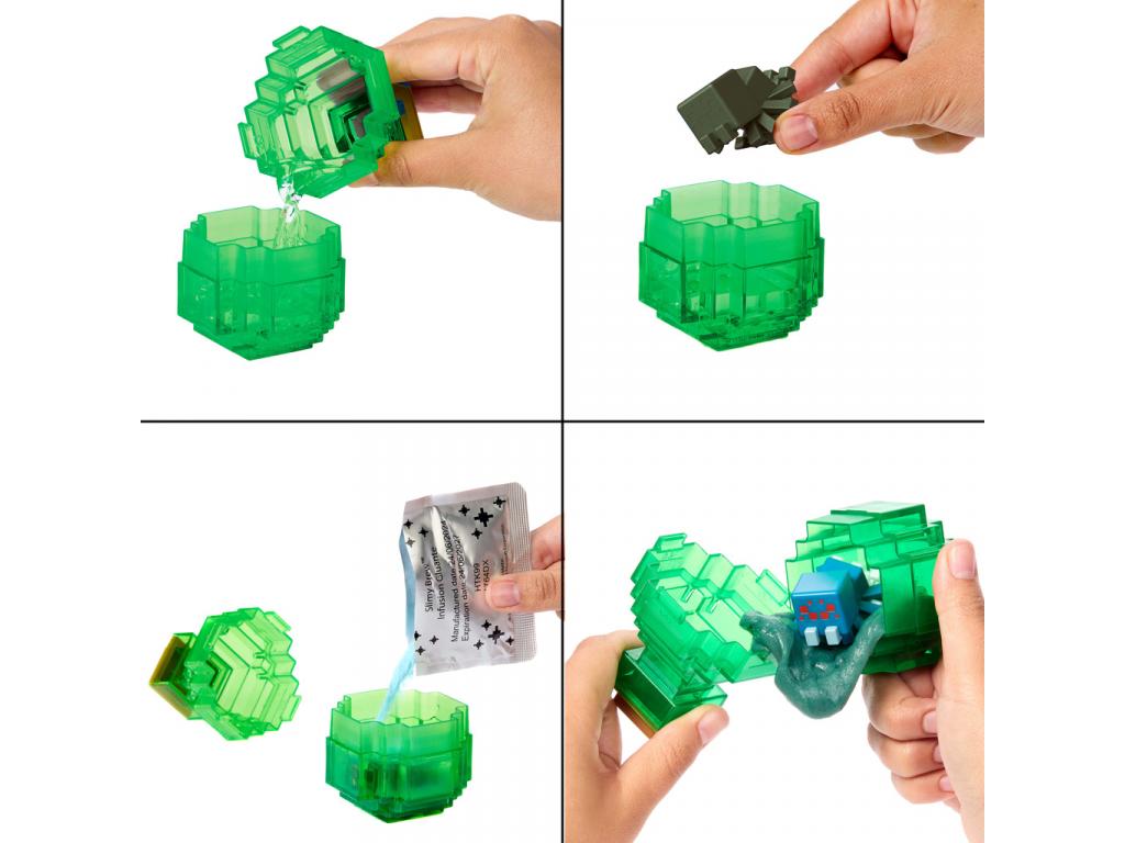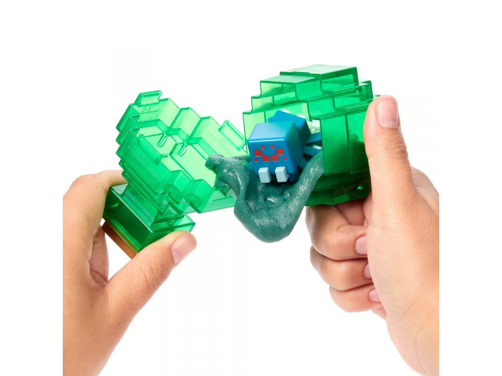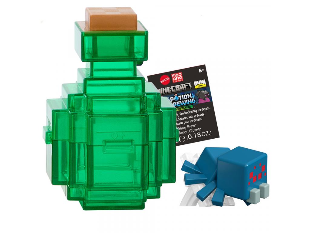 A szett tartalmaz egy átlátszó zöld Minecraft-stílusú bájitalos tartályt, egy fekete színű rejtett figurát, egy adag Potion Particles slime port, és természetesen a varázslatot! A játék során a gyermek vízzel tölti meg a tartályt, hozzáadja a slime port, majd beledobja a figurát. Néhány mozdulat után a slime kavarogni kezd, és előbukkan a valódi figura: ezúttal egy klasszikus Minecraft pók karakter, piros szemekkel és áttetsző lábakkal!