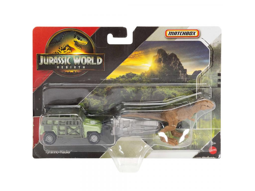 A készlet egy részletgazdag, terepszínű szállító járművet és egy félelmetes Tyrannosaurus rex figurát tartalmaz, amely tökéletesen illik a kocsihoz rögzíthető ketrecbe. A jármű kidolgozása hűen tükrözi a Jurassic World filmek hangulatát, és tökéletesen illeszkedik más Matchbox vagy Jurassic World játékkészletekhez. A dinófigurával együtt játszva a gyerekek eljátszhatják a filmek ikonikus jeleneteit, vagy akár teljesen új történeteket is kitalálhatnak.