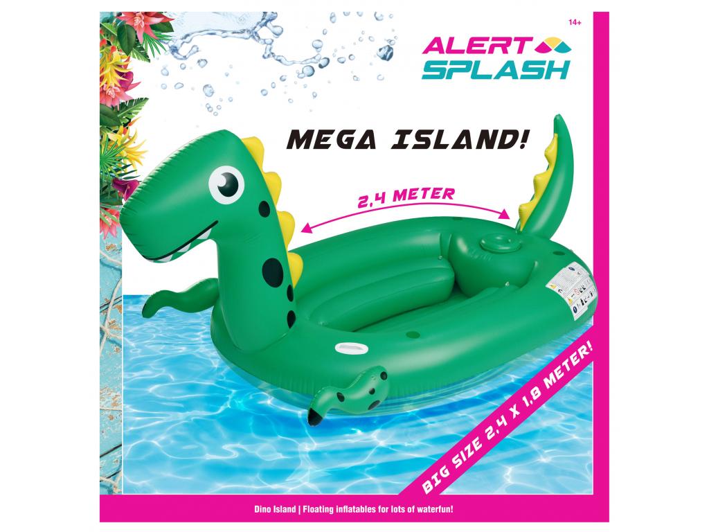 Ezzel a dinoszaurusz-szigettel a gyerekek kellemesen pihenhetnek a vízen. A dinoszaurusz felfújható, és két pad található benne. Két fogantyúval könnyen ki- és be lehet vinni a vízből, valamint hely van egy hűtőtáskának vagy hűtődoboznak, és egy pohárnak a pohártartóban. A dinoszaurusz-sziget mérete 240 x 180 cm. 14 éves kortól alkalmas gyermekek számára.