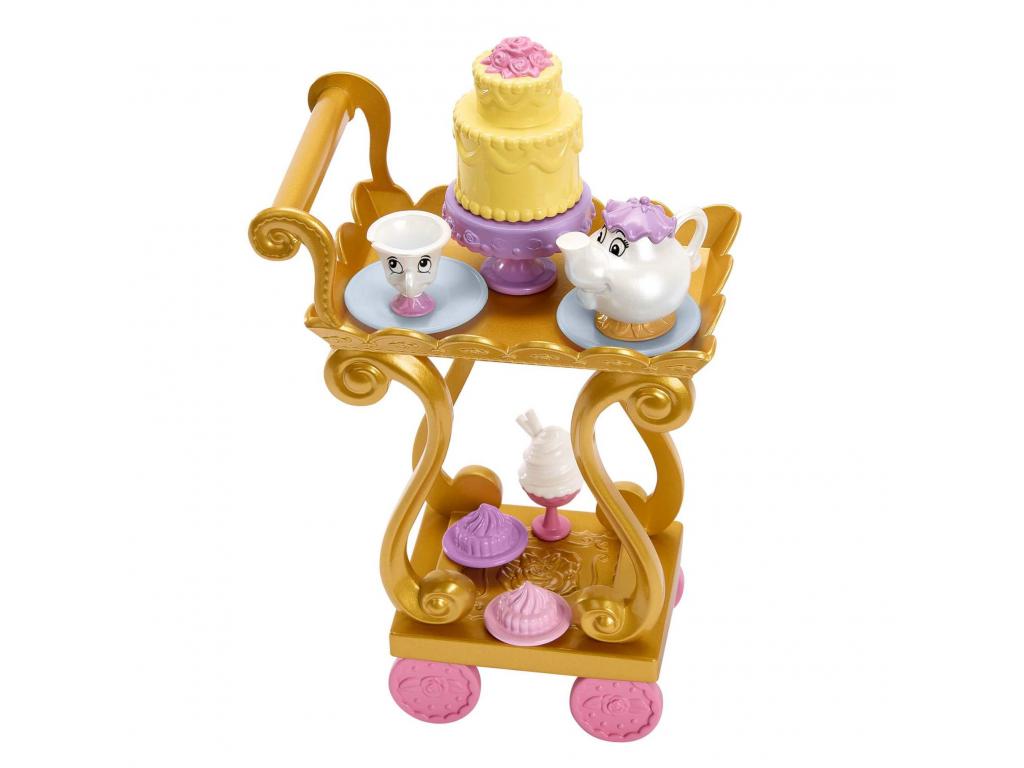 A Szépség és a Szörnyeteg Belle hercegnő fényűző teáskocsija tele van finomságokkal! Belle már szépen fel van öltözve, és még kiskutyája és a beszélő teáscsészék is szórakoztatják. 3 éves kortól alkalmas.