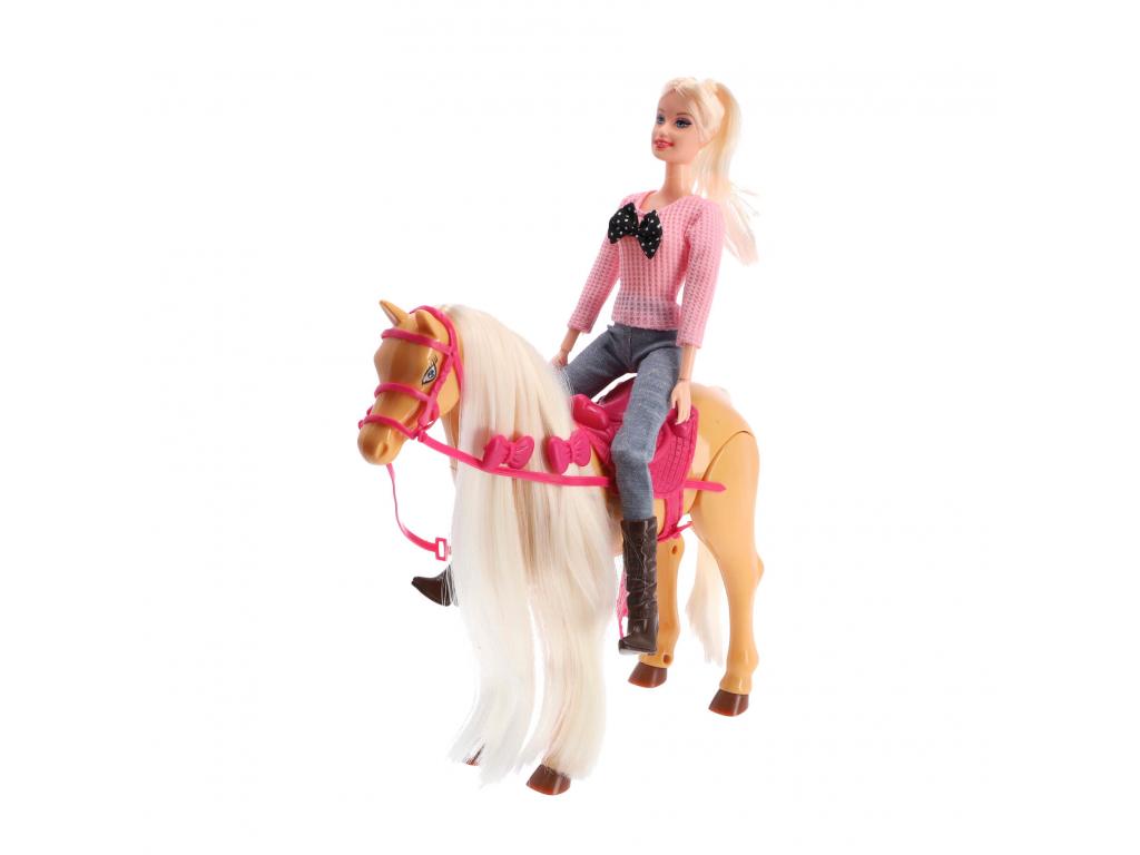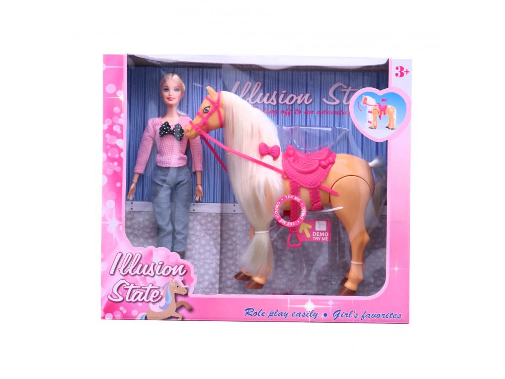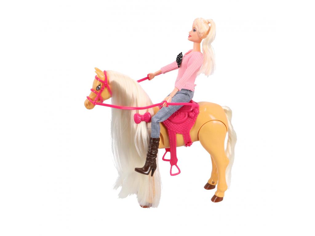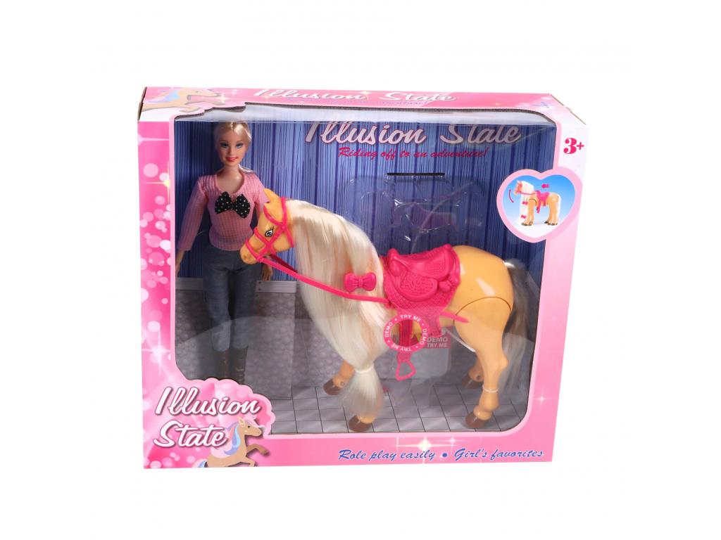 Igazi futó ló babával. Gyönyörű baba lóval, rengeteg részletgel és sportos ruhával. 30 cm magas. A ló valóban tud futni, úgyhogy helyezd a babát a nyeregbe, és nézd, ahogy a naplementébe vágtat. 3 éves kortól alkalmas. Elemek, 3xAA, mellékelve.