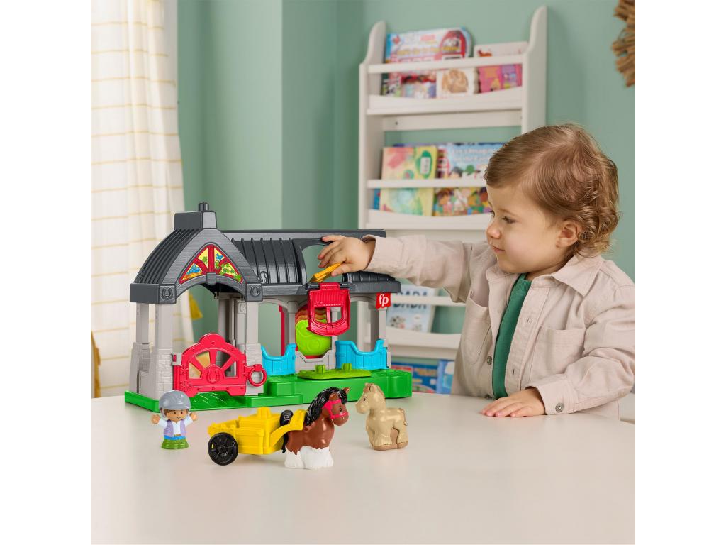 Gondoskodj és játszd a Fisher-Price Little People Stable Playset-tel! Ez az aranyos játékszett lehetővé teszi a gyerekeknek, hogy gondoskodjanak az állatokról és felfedezzék az istállót, szórakoztató hangokkal és kiegészítőkkel. Tökéletes a fiatal állatbarátoknak, akik szeretnek farmon kalandozni.