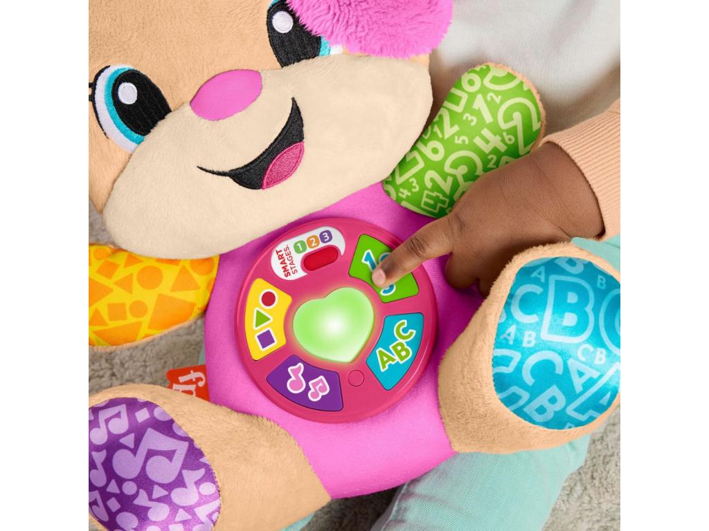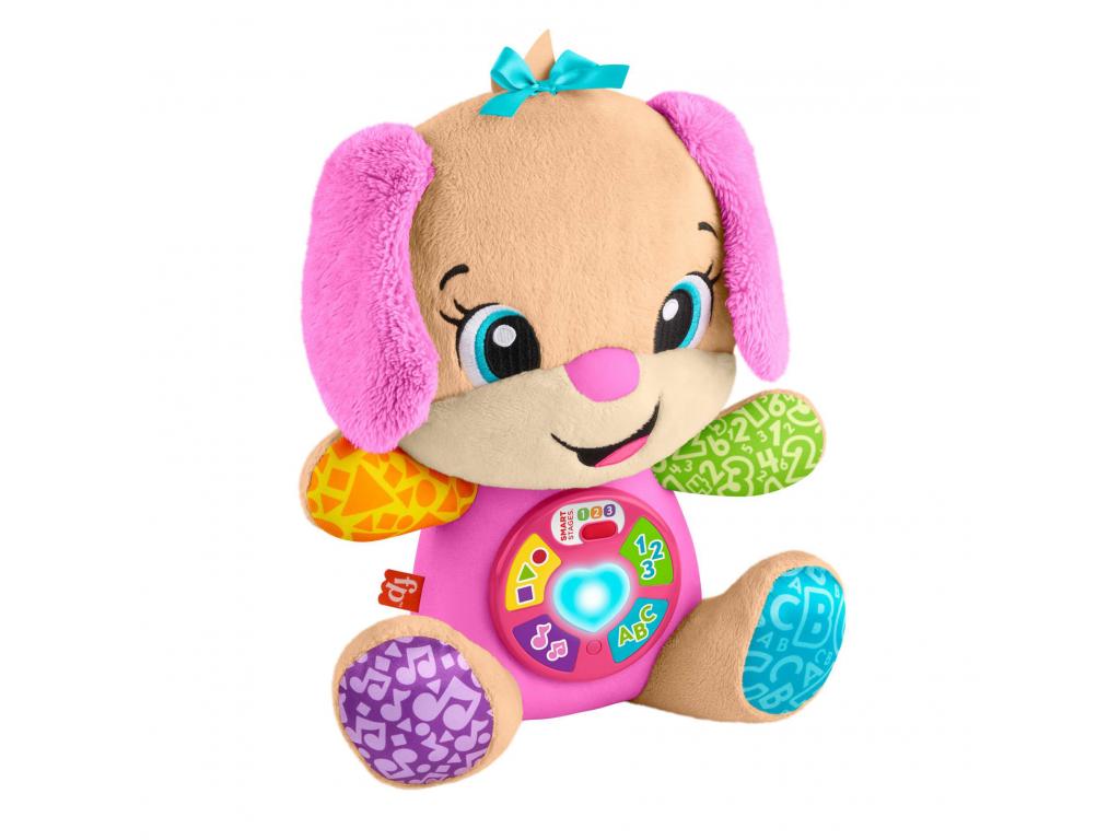 Puha plüss interaktív kiskutya (lány) babáknak, beszéd-hang-és zenélő funkciókkal, valamint fény effektekkel. Ezek között gombnyomással lehet választani. A beszéd nem magyar nyelvű.