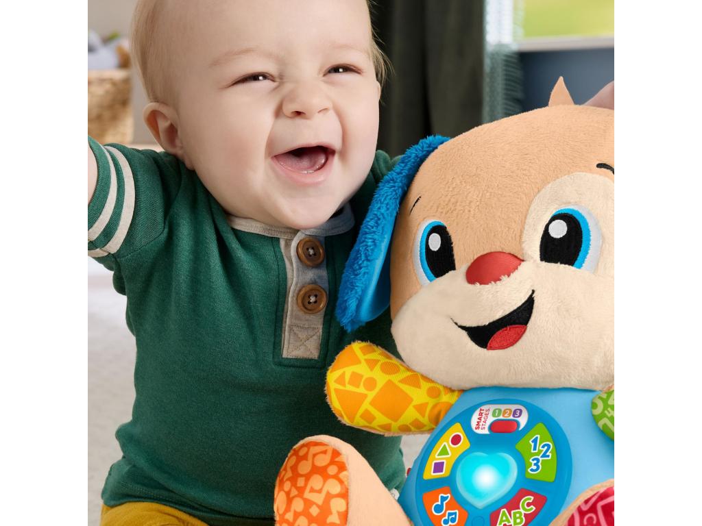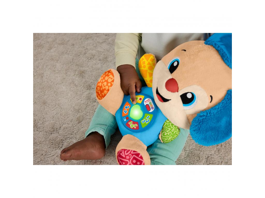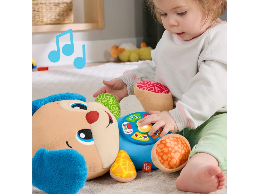Puha plüss interaktív kiskutya (fiú) babáknak, beszéd-hang-és zenélő funkciókkal, valamint fény effektekkel. Ezek között gombnyomással lehet választani. A beszéd nem magyar nyelvű.