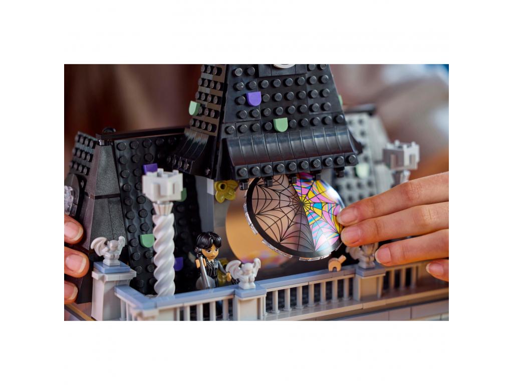 Üdvözöljük újra a Nevermore Akadémián ezzel a Wednesday és Enid szobája (76781) rejtélyes és kalandos játékszetttel, amely 10 éves és annál idősebb gyermekek és rajongók számára készült. Ez a részletgazdag LEGOŽ Wednesday Addams ajándékkészlet 4 gyűjthető minifigurát tartalmaz Wednesday-ről és Enidről, a Thing karaktert és egy diákszoba modellt. A szobában található egy cselló, írógép, rejtélytábla, erkély vízköpőkkel, nyitható ablak, gombokkal ellátott alaplap rejtett fiókok kinyitásához és még sok más. A fiókokban 2 minifigurát és kiegészítőket, például macskafülű sapkát és Enid telefonját lehet tárolni. Nézd meg a többi LEGO Wednesday szettet (külön kapható), és ösztönözd még több kalandot az igazság keresése során. Ez a szett remek születésnapi ajándék lehet gyerekeknek és Wednesday rajongóknak. Még több szórakozásért keressétek meg a készlet építési útmutatójának digitális változatát a LEGO Builder alkalmazásban. Az alkalmazás segítségével a gyerekek nagyíthatnak, 3D-ben forgathatják a modelleket és még sok más. Wednesday Addams játékok inspiráljátok a tévésorozat rajongóit, hogy derítsék ki az igazságot ezzel a Wednesday és Enid szobájának készlettel, amely tartalmaz egy diákszobát 2 titkos fiókkal, 4 minifigurát és rengeteg részletet.Nevermore Academy szett az iskolai játékszett tartalmaz egy építhető szobát, amelynek nyitható pókhálóval borított ablaka, gombokkal ellátott alapja, amely titkos fiókokat nyit meg, és 4 vízköpővel ellátott erkélye van.Kalandos játékszett 4 minibáb az okos szerepjátékos kalandokhoz: 2 változat Wednesday-ről és 2 változat Enidről, mindegyik különböző ruhákkal, parókával és arckifejezésekkel, valamint ThingRészletgazdag gyűjtői játék egy építhető készlet, amely a Wednesday tévésorozatból ismert tárgyakat és részleteket tartalmaz, hogy végtelen rejtélyeket és történeteket lehessen kitalálni és eljátszani.Wednesday Addams ajándék ez a kreatív LEGOŽ készlet remek születésnapi ajándék vagy meglepetés a tévésorozat 10 éves és annál idősebb rajongói számára, akik imádják Wednesday sötét humorát és Enid vidám személyiségétIntuitív digitális utasítások a LEGOŽ Builder alkalmazás tartalmazza a készlethez tartozó építési utasítások digitális változatát. Ösztönözze a képzelőerőt a LEGOŽ Wednesday készletek inspirálják a bátor fiatal rejtélyrajongókat az igazság keresésében, építési lehetőségekkel és kreatív részletekkel, amelyek fejlesztik a mesélési képességeiket és kreativitásukat.Méretek ez a 750 darabos készlet egy építhető szobát tartalmaz, amelynek aljában rejtett fiókok találhatók. A szoba magassága kb. 23 cm, szélessége 25 cm, mélysége 13 cm