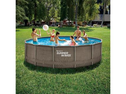 A Summer Waves medence, Active Frame 457 x 106 cm, barna rattan fonat, szűrőszivattyú leírása: