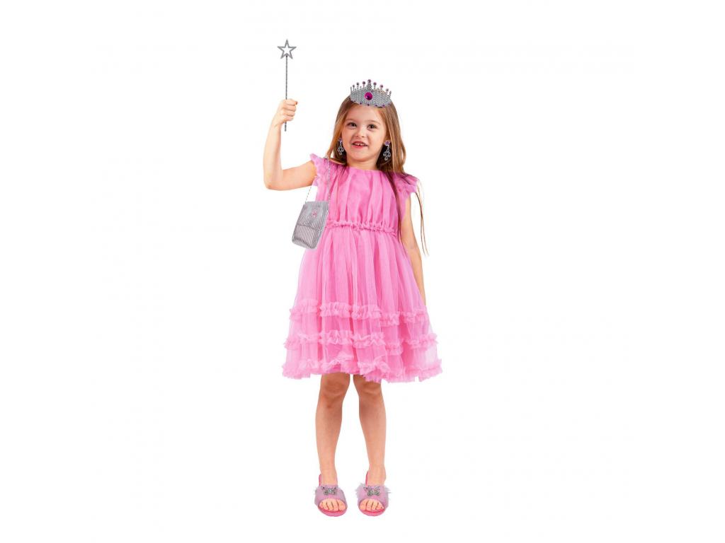 Ezzel az öltözködős játékszetttel igazi hercegnőnek fogsz kinézni. Az 5 részes készlet tartalmaz egy pár gyönyörű papucsot, egy pár fülbevalót, egy varázspálcát, egy tiarát és egy hozzá illő táskát. Milyen kalandokat fogsz átélni hercegnőként? 3 éves kortól alkalmas. A papucs mérete: 18,5 cm, sarokmagassága 4 cm. Jelmezt, ruhát nem tartalmaz.