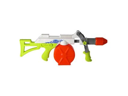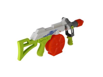 Tommygun Shockwave vízipisztoly. Vízipisztoly 650 ml űrtartalommal és körülbelül 9 méteres hatótávolsággal. 4 éves kortól alkalmas.