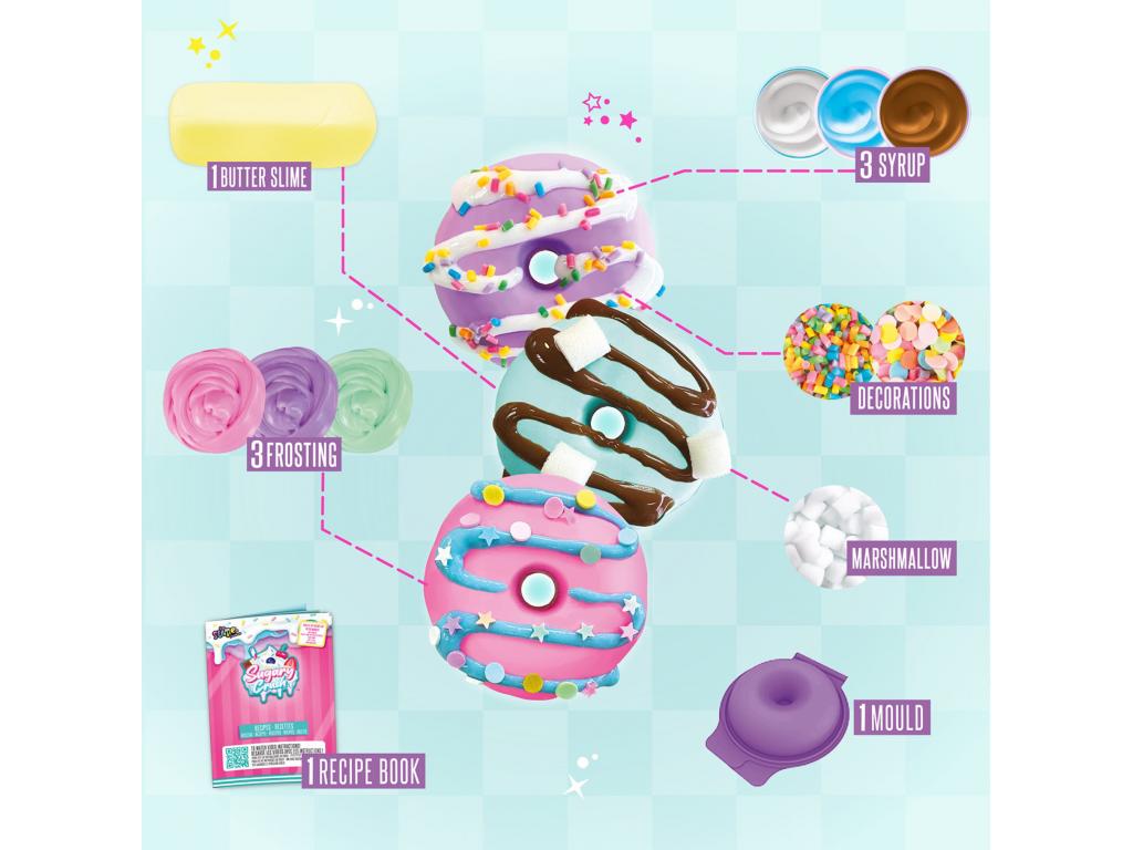 Sugary Crush Donuts Édes szórakozás kreatív gyerekeknek. A Sugary Crush Donuts segítségével a gyerekek saját színes donut-kreációkat készíthetnek! Ez a szórakoztató szett mindent tartalmaz, ami a cukormázzal és szórásos díszítéssel ellátott finom fánkok elkészítéséhez szükséges. Tökéletes kis cukrászoknak, akik szeretik az édes, fantáziadús játékidőt. Végtelen szórakozás mosogatás nélkül!