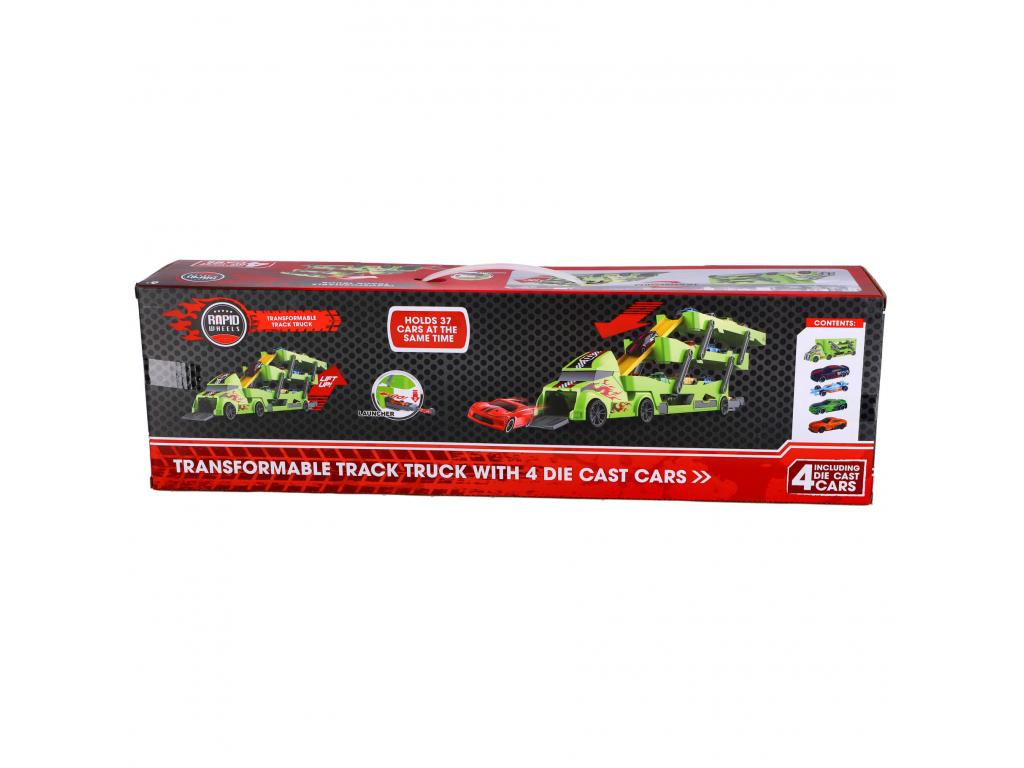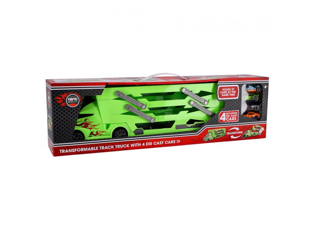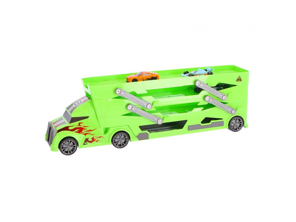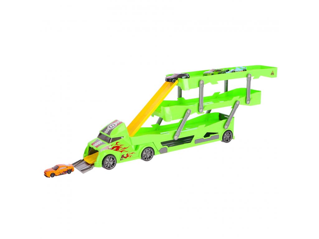 Ez az autószállító 4 autóval 4 autóval érkezik, de sokkal több autónak is helyet ad, mivel a platformok felemelhetők. 5 éves kortól alkalmas..