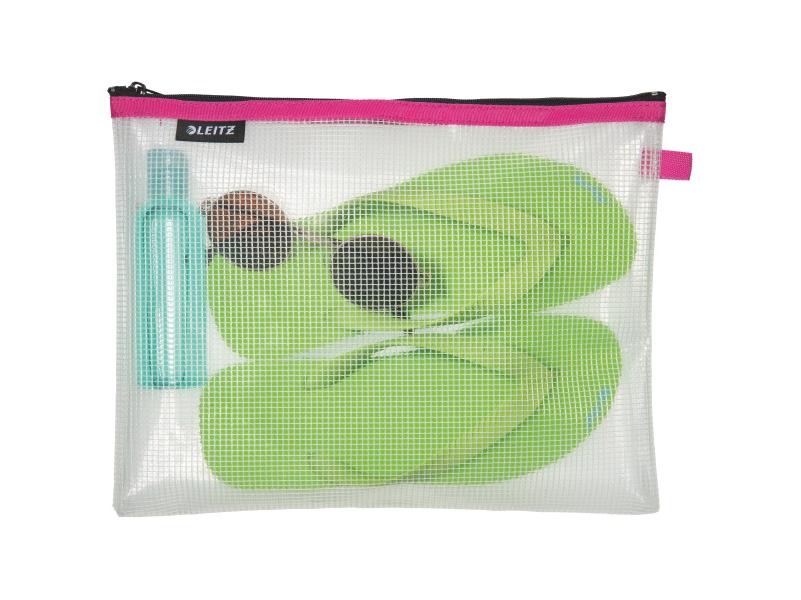 A Leitz Wow vízálló L-es rózsaszín utazótasak leírása: Kiváló minőségű tasak dokumentumok rendszerezéséhez és védelméhez utazások során, illetve egyéb személyes tárgyak - pl. úszó- és strandfelszerelés vagy alsónemű tárolásához.